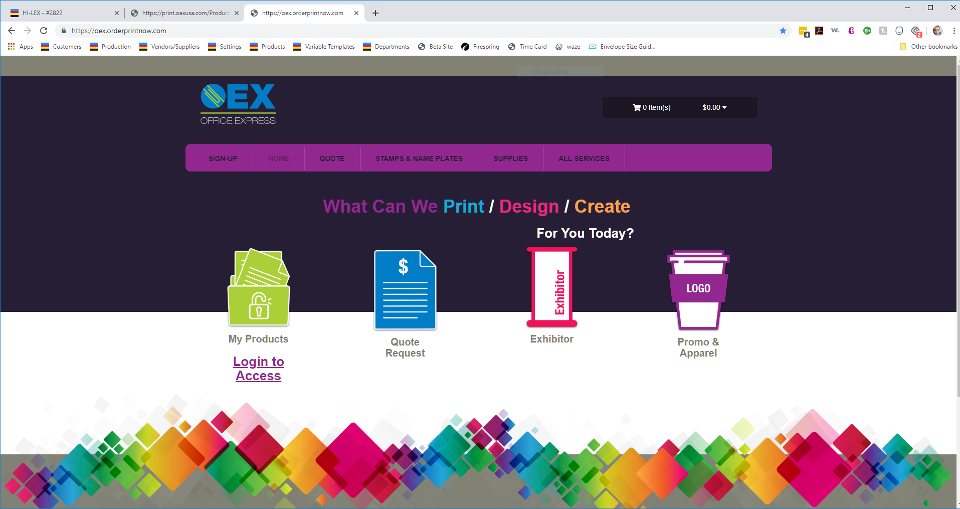 We will work with you to build a custom OEX Print Online portal for your variable and other branded products that will make life easier for branded purchasing—customize, review pricing, order, track and collect your purchase history at no charge. Reach out to your sales rep or any member of the OEX team to get started.